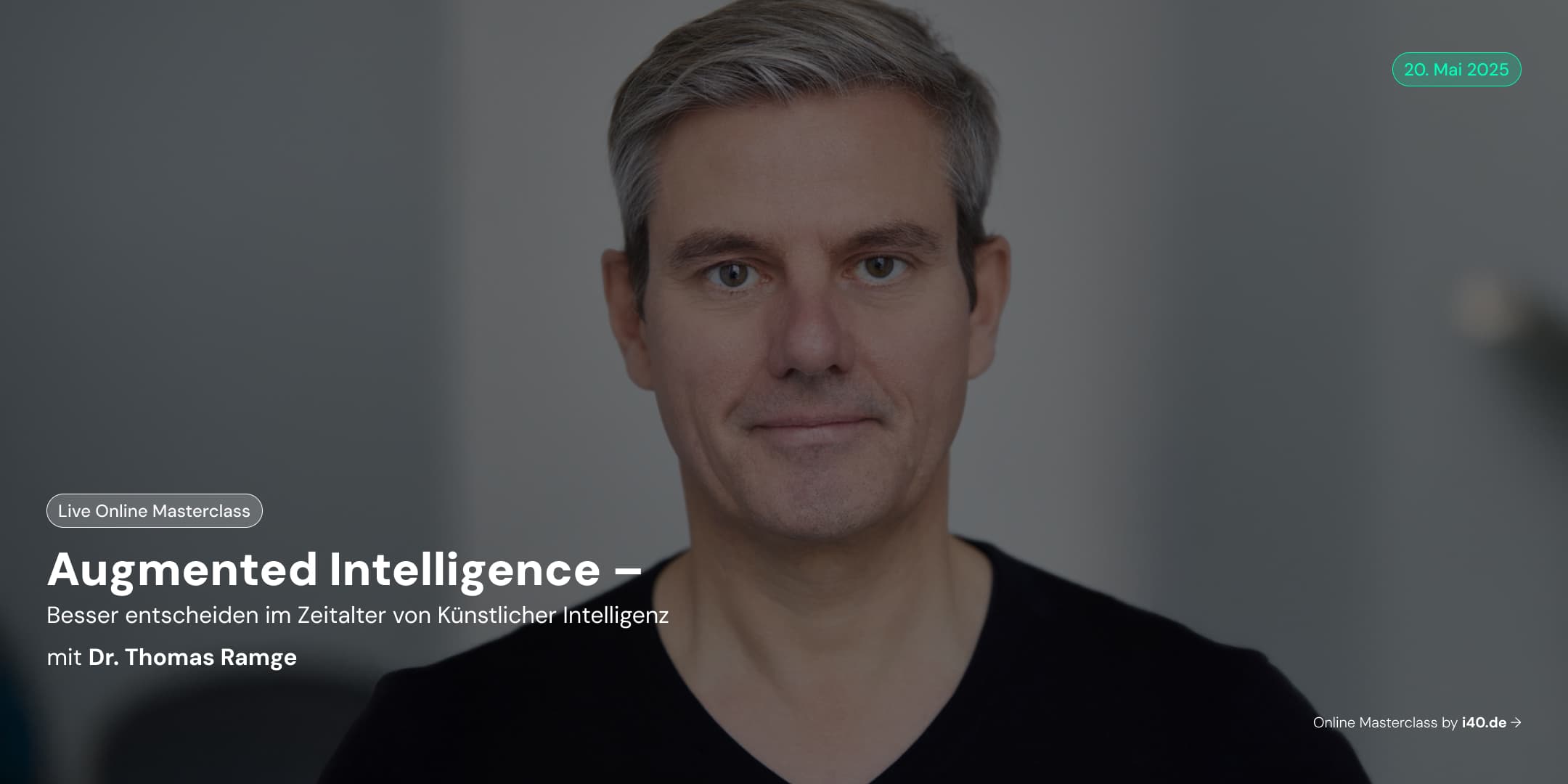 Live Online Masterclass "Augmented Intelligence - besser entscheiden im Zeitalter von KI" mit Dr. Thomas Ramge am 20. Mai 2025